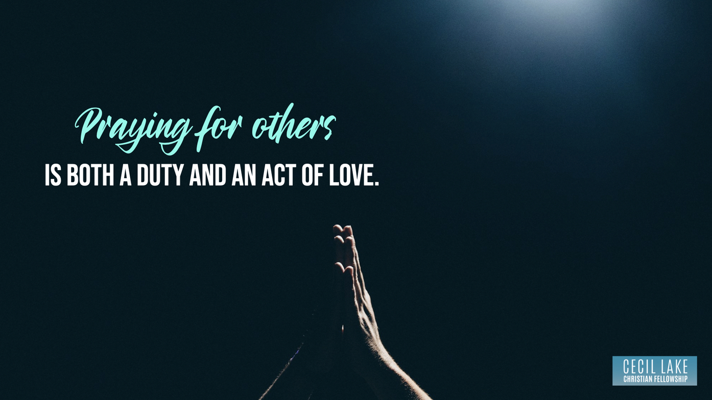 Praying for one another is one of the main characteristics of a true Christian church (Acts 2:42). It is both a duty and an act of love. Therefore, we should set aside a specific time to intercede for others.